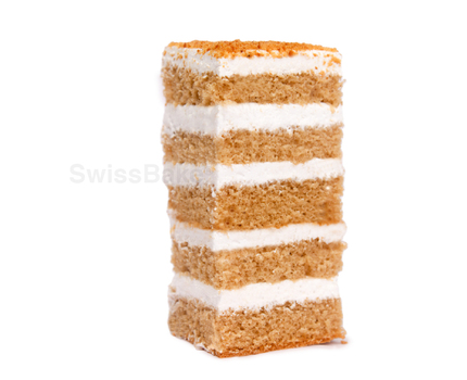 Use paddle attachment on a planetary mixer. Combine SwissBake® Bee Honey Cake Mix, Water and Honey in a mixing bowl. Mix for 1 minute on slow speed and then 1 minute on medium speed until a smooth mixture is formed. Preheat oven to 230°C (450°F). Spread the batter on a parchment lined sheet (4 - 5 mm thick) Bake for 7 - 8 minutes at 220°C until golden brown and firm. Cool completely, Cut into desired shapes and layer with your choice of filling.